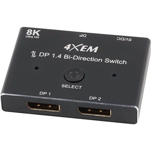 4XEM 8K DisplayPort Bi-Directional Switch - 3 x DisplayPort 1.4 Digital Audio/Video - Female - 1 x Micro USB - Female - 7680 x 4320 Supported - Black - 1