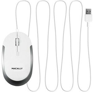 Macally USB Optical Quiet Click Mouse for Mac/PC in White & Aluminum - Optical - Cable - Aluminum, White - USB - 2400 dpi - Scroll Wheel - Symmetrical