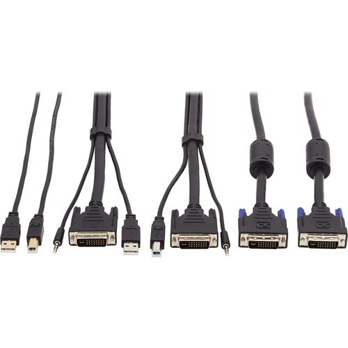 Tripp Lite by Eaton DVI KVM Cable Kit - DVI, USB, 3.5 mm Audio (3xM/3xM) + USB (M/M) + DVI (M/M), 6 ft. (1.83 m) - 6 ft KVM Cable for KVM Switch, Computer, Scanner, Monitor, Smart Card, Biometric Reader - First End: 1 x 24-pin DVI-I (Dual-Link) Male Video, First End: 1 x Mini-phone Male Stereo Audio, First End: 1 x Type A Male USB - Second End: 1 x 24-pin DVI-I (Dual-Link) Male Video, Second End: 1 x Mini-phone Male Stereo Audio, Second End: 1 x Type B Male USB - 60 MB/s - Supports up to 25